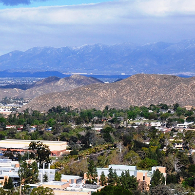 Aerial view of the campus and moutains (c) UCR