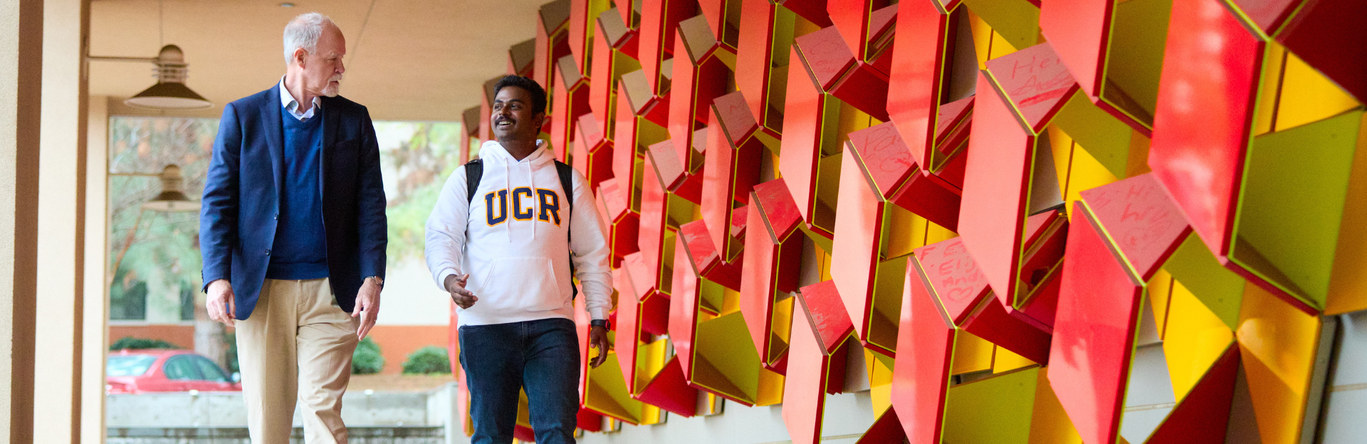 CNAS-Dean-with-current-student-outside-Genomics-building