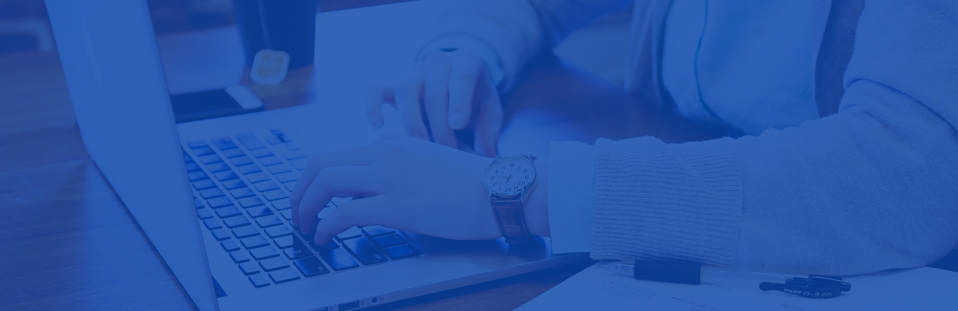 Student and laptop with blue overlay