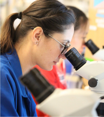 student and microscope